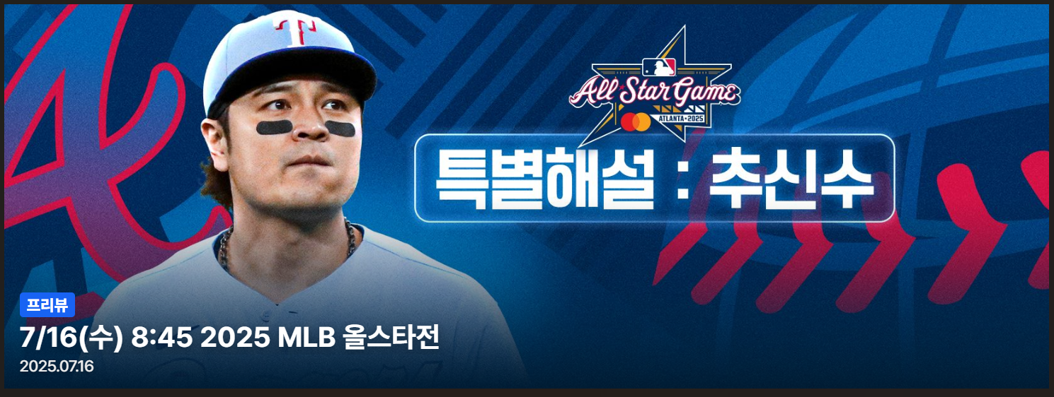 #MLB올스타전 #2025MLB중계 #SPOTVNOW생중계 #오타니1번지명타자 #애런저지랄리 #칼랄리홈런더비 #추신수해설참여 #피트크로우암스트롱 #클레이튼커쇼 #애틀랜타올스타전